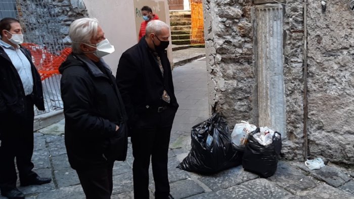 Questa mattina il sindaco di Salerno Vincenzo Napoli, insieme all'assessore all'Ambiente e allo Sport Angelo Caramanno, la consigliera Sara Petrone e ai responsabili dei servizi di spazzamento e raccolta di Salerno Pulita, hanno effettuato, su istanza di cittadini del comitato Salerno Mia, un sopralluogo nel centro storico ed in particolare in Piazza Sedile del Campo, via Porta Rateprandi e Gradoni della Lama, per discutere delle problematiche che interessano il quartiere e nello specifico quelle legate all'abbandono indiscriminato di rifiuti.