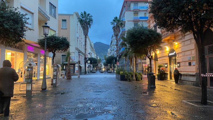 Niente da fare. Il maltempo è ancora nemico dei commercianti. A tre giorni dall'ingresso della Campania nella zona arancione e dalla riapertura dei negozi (non di beni di prima necessità) ci si mette anche la pioggia e l'allerta meteo a pesare sulla ripresa del commercio. Dopo una debole mattinata in cui il tempo ha regalato qualche ora “asciutta” incoraggiando, pochi, a fare un giro per i negozi, nel primo pomeriggio il violento acquazzone ha svuotato la città. Niente shopping natalizio. Il long week end dell’Immacolata ha regalato l'ennesimo bollettino nero a commercianti ed esercenti che speravano, dopo i tanti giorni di chiusura, di potersi "rifare" in questo martedì 8 dicembre. Il corso di Salerno, che di questi tempi sarebbe stato invaso da cittadini e turisti giunti da tutta la provincia anche per assistere all'accensione dell'albero di Natale in piazza Portanova, quest'anno è vuoto. La mancanza delle Luci d'Artista, il cattivo tempo e la paura del Covid-19 sono stati gli ingredienti dell'ennesimo colpo all'economia cittadina.