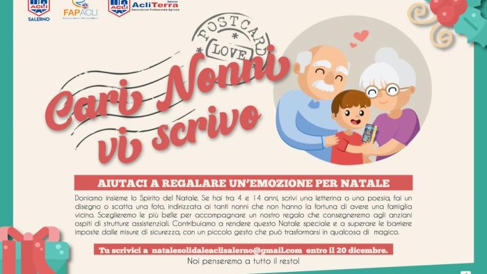 Ebbene, proprio a loro volgiamo rivolgerci; ai bambini e giovani di età compresa tra 4 e 14 anni, chiediamo di inviarci un augurio natalizio in forma di lettera, disegno o video messaggio da indirizzare ad un nonno immaginario, che possa scaldare il cuore di tanti anziani, che vivono maggiormente la solitudine in questi tempi difficili.
