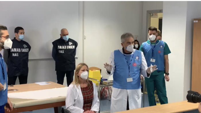 "Una luce in questo vaccino dopo tutto questo buio". Queste le prime parole di Maria Lombardi, infermiera caposala del reparto di medicina d'urgenza del Rufggi d'Aragona di Salerno. E' lei la prima donna a vaccinarsi al nosocomio salernitano, alle 10.30. Il reparo dedicato alle prime 100 fiale di vaccino arrivate questa mattina, è già pronto per accogliere i medici e gli infermieri che hanno scelto di vaccinarsi.