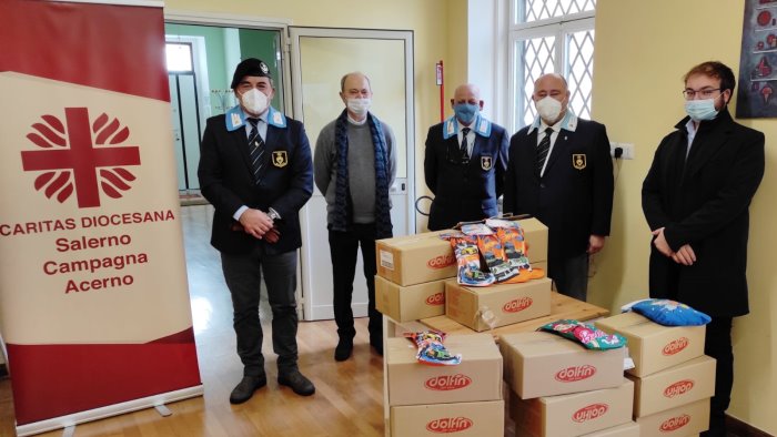 Anche quest’ anno a Salerno scende la “Befana del soldato”. Il presidente della Associazione Nazionale dell’Arma di Cavalleria (ANAC) - sezione di Salerno, Michele Battista, insieme ad alcuni consiglieri di sezione e ad un rappresentante del reggimento “Cavalleggeri Guide” (19°), si sono recati presso la sede della Caritas diocesana, diretta da don Marco Russo, per consegnare 150 calze della befana che saranno distribuite dai volontari della Caritas ai bambini delle famiglie indigenti della diocesi salernitana.