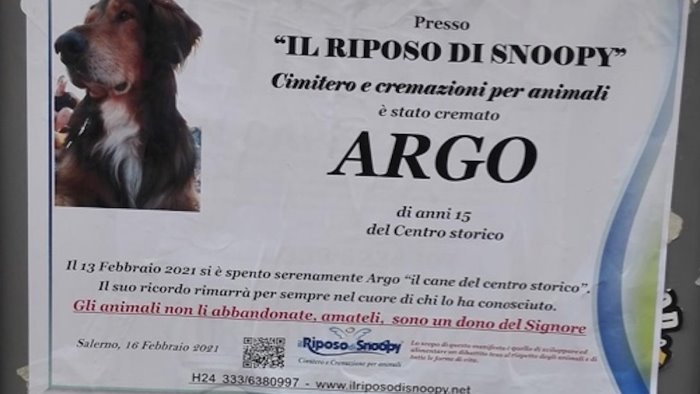 Per 15 anni è stato il cane del centro storico di Salerno, i residenti hanno voluto ricordarlo con un manifesto e una foto. “Il suo ricordo resterà per sempre nel cuore di chi lo ha conosciuto, gli animali non li abbandonate, amateli, sono un dono del Signore” il messaggio d'affetto per l'amico a 4 zampe.