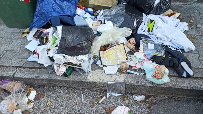 Buste strappate ed indifferenziato per strada: tra i rifiuti anche siringhe