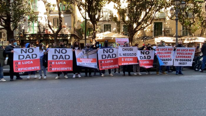 "L'ultimo decreto sostegni è insufficiente - Afferma uno dei manifestati - La nostra è una necessità." Presente alla manifestazione anche il candidato sindaco, avvocato Michele Sarno che ha dichiarato: "Questa mattina siamo riuniti per marcare una posizione che non è politica. Vengo qui nella mia funzione di avvocato per tutelare i commercianti. Non si può cinture a parlare di emergenza e non adottare soluzioni emergenziali. Queste sono categorie che lavora grazie alle serrante aperte, se non aprono non hanno stipendio. Bisogna prendere atto che il paese non può condannare a morte i suoi cittadini. Lo stato non è il participio passato del verbo essere, ma deve tutelare i cittadini. Il fallimento di questi esercizi commerciali sarà il fallimento della nostra comunità." Presente, tra gli altri, il candidato a sindaco Antonio Cammarota.