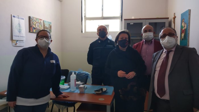 Al carcere di Salerno era presente Antonio Maria Pagano, dirigente sanitario dell’Istituto di Fuorni, che sta promuovendo la campagna di vaccinazione anche per gli agenti di polizia penitenziaria (che Fino ad oggi contano a Salerno 110 unità vaccinate, ad Eboli 25 unità e a Vallo della Lucania 10), la direttrice del carcere Rita Romano e il comandante Gianluigi Lancellotta.