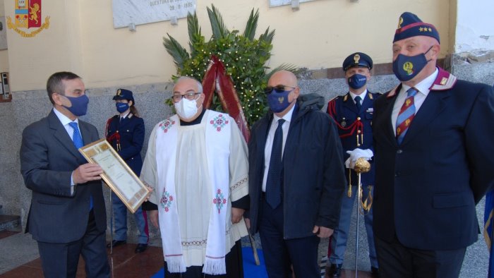 A Salerno la celebrazione si è tenuta alle ore 09:30 in Piazza Amendola. Il Questore della Provincia di Salerno, Maurizio Ficarra, alla presenza del Prefetto, Francesco Russo, ha deposto, dinanzi alla lapide per i caduti della Polizia di Stato, una corona di fiori, in ricordo delle tante donne ed uomini in uniforme, che hanno sacrificato la propria vita a servizio delle Istituzioni e dei cittadini. Una cerimonia sobria, in conformità con le misure di contenimento per la limitazione della diffusione del contagio del Coronavirus Covid-19. Un anno impegnativo quello trascorso che ha consentito a livello provinciale di segnare un significativo decremento dei reati.