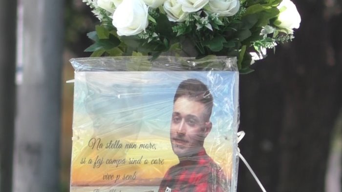 “Na stella nun more se a fai campa rind o cor, viv p semb”. Una foto, dei fiori bianchi e la frase di una canzone di Rocco Hunt, proprio a pochi passi da dove Loris Del Campo ha perso la vita, lo scorso 10 maggio, durante la festa per la promozione in serie A della Salernitana.