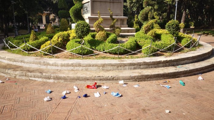 Vandali in azione nella Villa Comunale di Salerno, di via Roma. Ignoti hanno svuotato sui viali i cestini della spazzatura. L'ira del sindaco Vincenzo Napoli: "Uno sfregio inaccettabile. Provvediamo subito a pulire e con le forze dell'ordine troveremo, anche con ausilio telecamere di video sorveglianza, e puniremo i responsabili verificando tutte le ipotesi anche quella di un boicottaggio criminale."