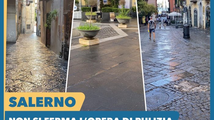 Proseguono le operazioni di lavaggio e pulizie strade a Salerno. "Un intervento ordinario ma al tempo stesso capillare e costante" Ha commentato il sindaco Vincenzo Napoli.