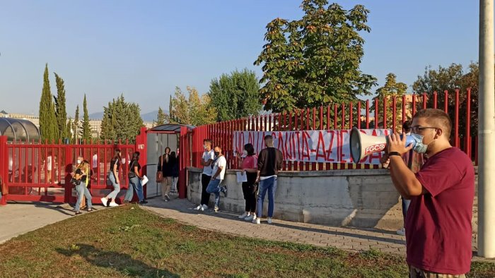 Contestazione per il test d'ingresso a professioni sanitarie. Questa mattina i giovani di Fronte della Gioventù Comunista hanno manifestato davanti il campus universitario di Fisciano.