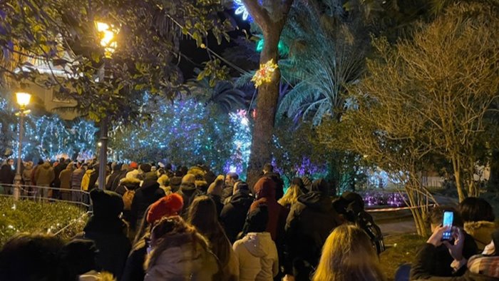 Caos sotto il grande albero di natale, assediato dalle persone intente a scattare foto e selfie e alla villa Comunale. Lunghe code per accedere nei giardini e ingressi contingentati. E' scattato così il piano per cercare di evitare pericolosi assembramenti nell'area, cosa che però non è stata possibile.