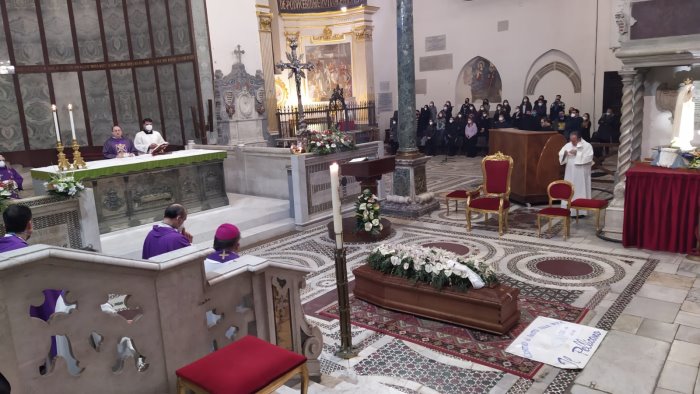 Un Duomo gremito ha dato l'addio oggi pomeriggio a monsignor Francesco Fedullo, parroco della chiesa di San Domenico, stroncato dal Covid a 66 anni. Si è spento dopo aver lottato all'ospedale Ruggi D'Aragona. Amatissimo dai fedeli era diventato un punto di riferimento sicuro per centinaia di famiglie. Tantissime le persone che lo hanno voluto salutare per l'ultima volta.