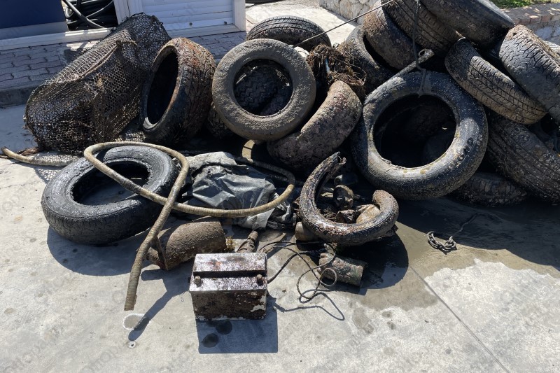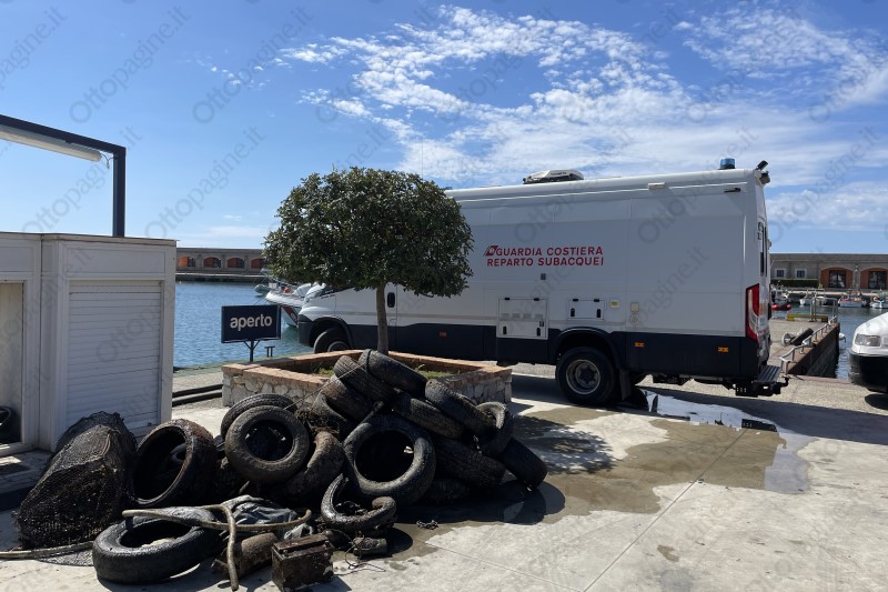 Pesca grossa di rifiuti, stamattina, nelle acque del porto di Marina di Camerota, in occasione della pulizia dei fondali marini organizzata dall'associazione ambientalista Marevivo in collaborazione con il Comune di Camerota e la Guardia costiera. I sub del Reparto subacquei della Guardia Costiera di Napoli, insieme ai Diving del posto e ai sub, hanno raccolto rifiuti di ogni genere, tra cui pneumatici, batterie, sedie di plastica e perfino un trapano.
