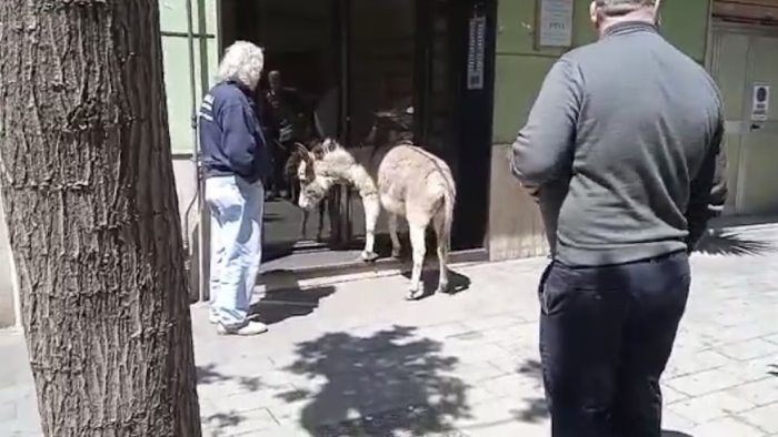 Sorpresa questa mattina in via Manganario, a Salerno, dove è apparso un asinello. L'animale ha provato ad entrare nel portone di un palazzo, nelle vicinanze di un supermercato. I passanti lo hanno notato e hanno allertato le autorità competenti, legandolo con un guinzaglio improvvisato sul momento. Non è chiaro come l'asinello possa essere arrivato in città.