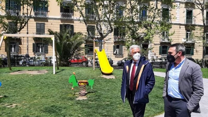 Sono terminati i lavori in piazza Alario, a Salerno. Questa mattina sopralluogo del sindaco Vincenzo Napoli che ha visitato l'area.