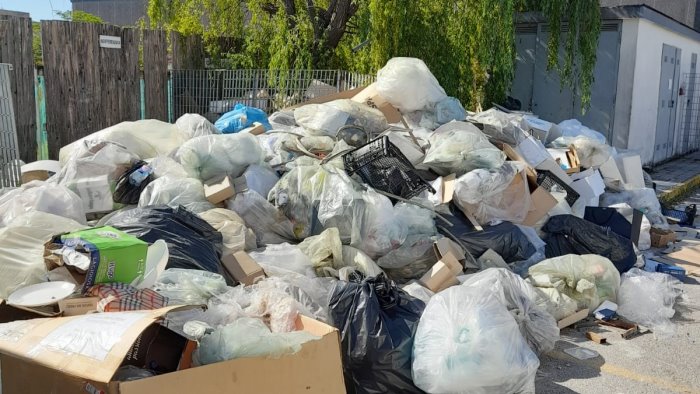 "Sotto questa enorme mole di rifiuti di ogni genere, dovrebbero esserci i cassonetti per la raccolta dfferenziata. Si tratta di una vera e propria discarica dove sono stati abbandonati sacchetti contenenti ogni tipo di rifiuto", la denuncia degli operatori.