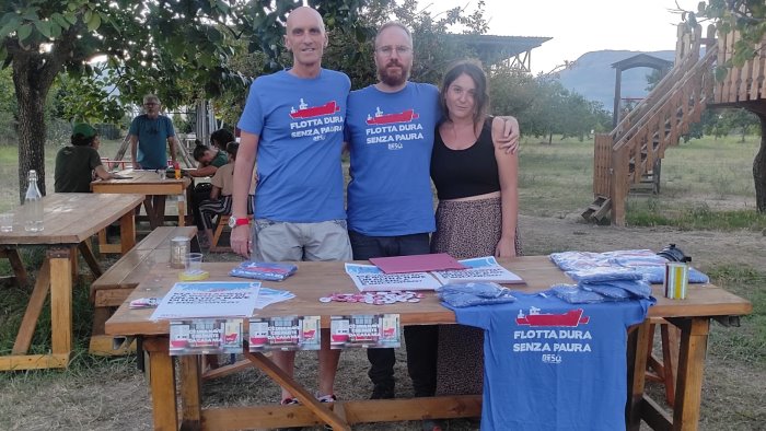 Stefano Ferrara (SF): rimanendo sugli obiettivi, ResQ per me non è solo salvataggio ma anche testimonianza. Corrado Mandreoli (vicepresidente) ci mostrò un video, durante il primo incontro, in cui la nave si avvicinò a un barcone, affiancato dalla guardia costiera libica. Da ResQ, hanno scortato questa nave, dicendo alla guardia costiera che li stavano filmando. Anche questo è un lavoro importante. Noi, come equipaggio di terra, cerchiamo il contatto con le altre associaioni, che si occupano di diritti sociali, diritti civili, di ambiente (non a caso stiamo qui nel Parco Archeologico di Pontecagnano).