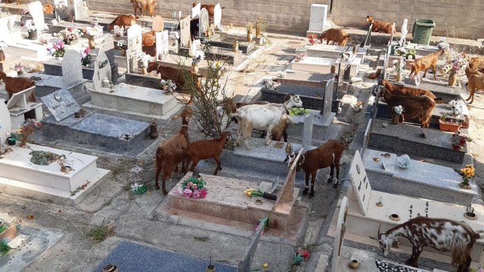 Capre e pecore tra le tombe: c'è indignazione per quanto accaduto questa mattina al cimitero di Salerno. Gli ovini ha scorrazzato tra le lapidi, cibandosi dei fiori posati accanto a diverse tombe, rovesciando alcune suppellettili e lasciando una serie di escrementi. Uno scempio denunciato anche a mezzo social grazie alle numerose segnalazioni da parte dei cittadini. Diversi i portafiori e le piante danneggiate nel corso della loro irruzione.