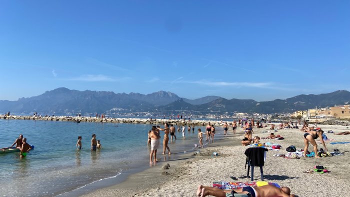 Ed è corsa alle spiagge a Salerno. Pieni i litorali cittadini fin dalle prime ore della mattina, dalla spiaggia di Santa Teresa alla zona orientale della città, interessata dal ripascimento. I bagnanti non hanno disdegnato un bel tuffo fuori stagione. Bagni a mare a novembre anche per bambini, anziani e famiglie.
