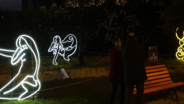 “Mare mosso”, mostra di opere artistiche luminose ideate e prodotte dai giovani salernitani impiegati nel progetto sociale “Accendi il tuo futuro”, si arricchisce di una nuova opera nata dalla collaborazione con la dirigente Renata Florimonte e gli studenti del Liceo Artistico Sabatini-Menna di Salerno.