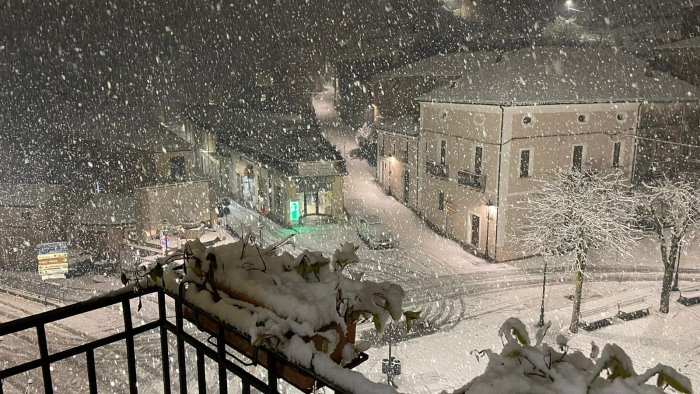 Montesano sulla Marcellana sotto la neve: nel video postato da don Nicola Coiro un'istantanea del paese, che testimonia come sia cambiato il meteo rispetto alle piogge incessanti degli ultimi giorni. Il sindaco Giuseppe Rinaldi ha disposto la chiusura delle scuole di Tardiano e Capoluogo: attivata la Protezione civile per verificare le condizioni di sicurezza nei plessi scolastici di Arenabianca e Scalo e per assistere la popolazione. Scuole chiuse e disagi anche in altri comuni del Cilento: diversi i sindaci che, in via prudenziale, hanno deciso lo stop alle lezioni.