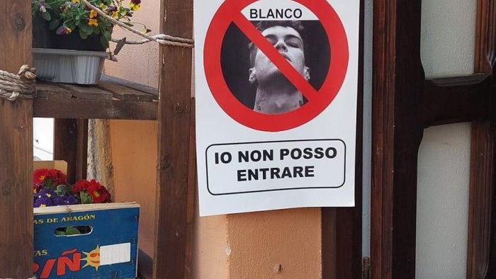 Blanco distrugge le rose a Sanremo, fioraio di Camerota ‘vieta’ l’ingresso al cantante nella sua “Bottega dei Fiori”. Il titolare dell’attività ha esposto un cartellone ironico dinanzi alla sua attività, a Marina di Camerota, con la foto di Blanco, segnato dal divieto di accesso e dalla scritta “Io non posso entrare”.