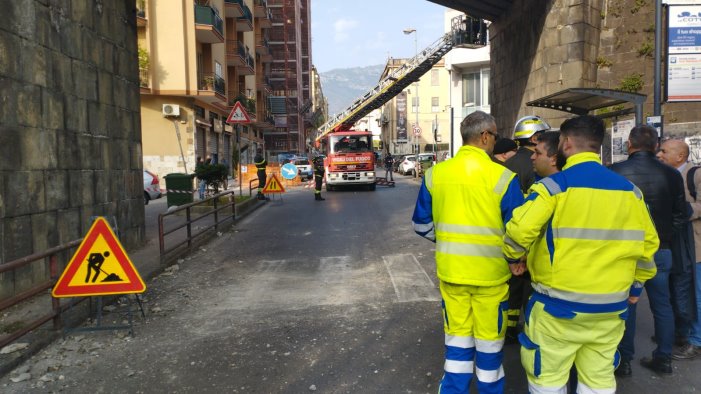 I caschi rossi hanno avviato le operazioni di verifica e messa in sicurezza del ponte ferroviario, spicconando le pareti. Gravissimi i disagi per la circolazione: via Irno è una delle arterie più importanti e trafficate di Salerno. Auto e mezzi pubblici bloccati, le ripercussioni si sono inevitabilmente estese non solo all'area di via Irno ma di tutta la zona circostante.