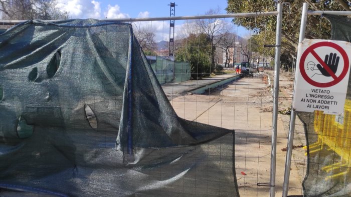 Nonostante si noti la presenza di tanti lavoratori impegnati con il rifacimento e il restyling del Parco, è ancora impossibile apprezzarne i cambiamenti e immaginare il risultato finale (al di là del rendering). Non c'è ancora traccia del roseto, del solarium o della nuova area ludica per i bambini. Come si può notare dalle immagini, si sta procedendo con la rizollatura, con la potatura degli alberi e la rimozione di alcune strutture (si sta dando priorità alle fontane). Anche per la sezione del parco accessibile da via Limongelli -unica zona che dispone di panche e tavoli - si è proceduto alla potatura degli alberi e alla rimozione della sua fittissima vegetazione. La zona rimane interdetta al pubblico e si è arrivati ormai a 18 mesi consecutivi di chiusura. Un tempo lunghissimo in cui, nel mentre, si è passati dalla crisi pandemica a quella bellica.