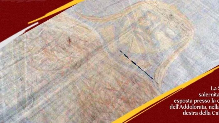 "Ad avvalorare questa ipotesi, la diffusione del culto della Sacra Sindone da parte della terziaria clarissa Maria Francesca di Savoia che, dalla metà del Seicento, fece eseguire diverse copie della Sacra Sindone di Torino del 1665, per distribuirle a chiese e conventi dell'Ordine di Santa Chiara - spiegano dall'arcidiocesi salernitana -. Ex tracum ex originali taurinense anno 1665 è, infatti, l'iscrizione presente sul lato sinistro della copia salernitana. La tradizione riferisce che le singole copie venivano tutte messe "a contatto diretto" con la Sacra Sindone di Torino. Perciò, in senso stretto, la copia salernitana sarebbe una reliquia, per contatto, che le Clarisse esponevano ogni anno nel periodo della Settimana Santa, nella chiesa del monastero".