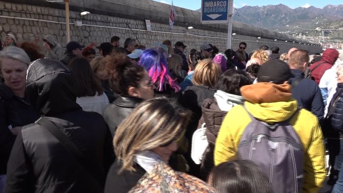 Pienone di turisti per la Pasquetta a Salerno. Tantissime le persone italiane e straniere, che hanno affollato gli imbarchi per la Costiera Amalfitana al molo Masuccio. Nonostante il clima incerto, non proprio primaverile, e il forte vento gettonatissime le solite destinazioni: Amalfi, Positano e Ravello. Presenti visitatori da tutto il mondo che fanno preannunciare una grande stagione turistica per la prossima estate.