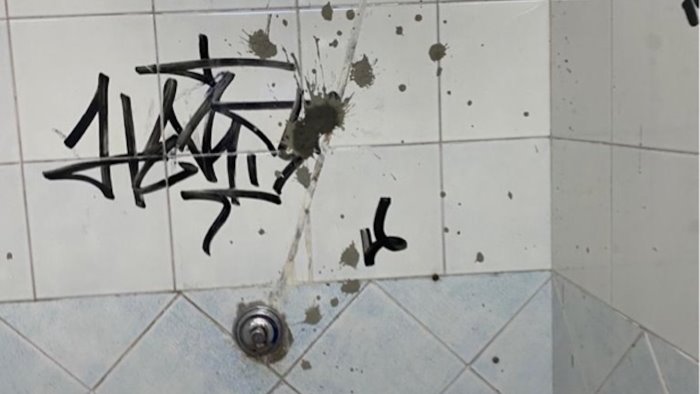 Questa mattina alle 6 e 30 una squadra si è recata sul posto per le prime operazioni di pulizia: per cancellare scritte e schizzi di vernici sulle mattonelle, invece, servirà qualche giorno in più.
