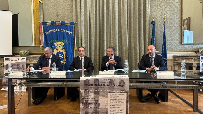 Laboratori culturali e formativi dalle competenze digitali a quelle di socialità, contro illegalità e violenza. Dall’uso dei social, agli eventi sportivi, dagli eventi di valorizzazione del patrimonio culturale del territorio ai workshop di orientamento. Si tratta del progetto Zoomers, presentato stamane in provincia, a Salerno, dal presidente di AiCS Salerno Avv. Marco De Luca. Erano presenti il presidente di AiCS nazionale, onorevole Bruno Molea, l’onorevole Piero de Luca, il Presidente della Provincia di Salerno Franco Alfieri. A questi si aggiungono i sindaci delle città coinvolte (l’ambito territoriale individuato è l’ambito S6, compresivo dei comuni di: Baronissi, Bracigliano, Calvanico, Fisciano, Mercato San Severino e Siano). Infine, presenti il Direttore dell’ambito S6 del progetto, il dott. De Blasio, e la Dirigente dei Servizi Sociali Minorili, la dottoressa Sorrentino.