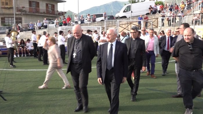E' stato inaugurato venerdì 23 giugno il Parco Pietre Vive, annesso all'Oratorio della Chiesa di Santa Croce a Giovi. Riqualificato e completato l''oratorio, realizzato alcuni anni fa grazie al contributo del Comune di Salerno e della Regione Campania, con la realizzazione di strade di accesso, anfiteatro, orto didattico, campetto di calcio, parco giochi per bambini. Un complesso complesso che valorizzerà il territorio offrendo nuovi spazi per bambini, giovani, anziani, famiglie.