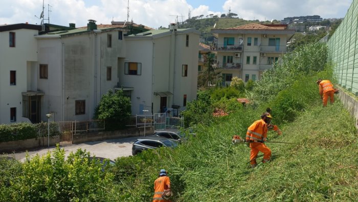 Sempre a partire dal mese scorso le attività stanno riguardando anche la Tangenziale di Salerno secondo precise fasi lavorative, definite anche in ragione del contenimento dei disagi all’utenza: in orario diurno sulle aree in corrispondenza degli svincoli, in orario notturno sull'asse principale e successivamente sulle scarpate con accesso dalle attigue viabilità comunali.