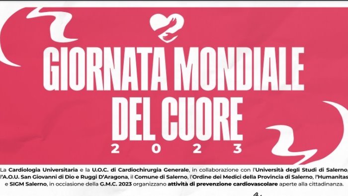 In occasione della Giornata Mondiale del Cuore 2023, la Cardiologia Universitaria e la U.O.C. di Cardiochirurgia Generale, in collaborazione con l’Università degli Studi di Salerno, l’A.O.U. San GIovanni di Dio e Ruggi D’Aragona, il Comune di Salerno, l’Ordine dei Medici della Provincia di Salerno, l’Humanitas e SIGM Salerno, organizzano attivita` di prevenzione cardiovascolare aperte alla cittadinanza.