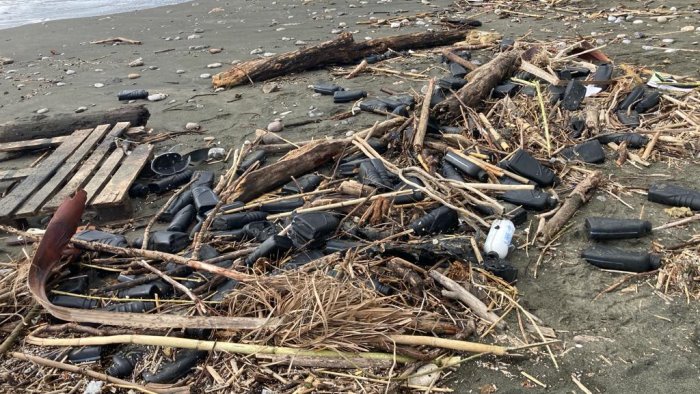Salerno, centinaia di lattine di olio per motore sulla spiaggia di Torrione