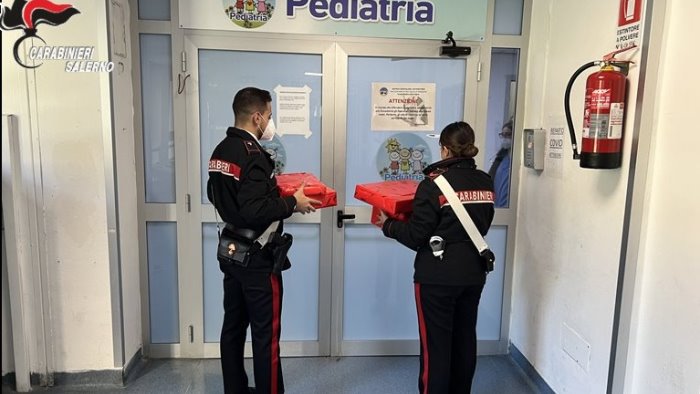 Il Direttore Sanitario dell’ospedale, Dott. Walter Longanella, la Direttrice dell’U.O.C. Pediatrica, Dott.ssa Carolina Mauro, la Direttrice della Clinica Pediatrica, Profe.ssa Daniela Melis, e il Direttore della Chirurgia Pediatrica, Dott. Umberto Ferrentino, hanno accolto il Comandante della Compagnia Carabinieri di Salerno, Magg. Antonio Corvino, ed una rappresentanza di Carabinieri della provincia che alla presenza dei genitori dei bambini hanno consegnato ai piccoli pazienti giocattoli e libri nella speranza possano servire a rendere meno triste la permanenza in ospedale.