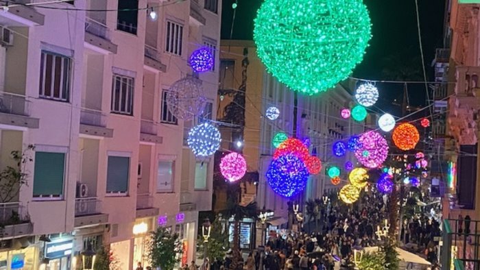 Ultime ore di corsa allo shopping pre natalizio e su Corso Vittorio Emanuele a Salerno tantissimi i cittadini e i visitatori che stanno passeggiando e facendo spese all'ombra delle Luci d'Artista, complice anche il clima mite. Folla nei negozi, si procede a rilento in via Mercanti.