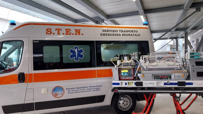 Lo STEN (sistema di trasporto in emergenza neonatale), innalzerà lo standard delle cure riservate al neonato e opererà sulle province di Salerno e Avellino, coprendo un bacino di possibile utenza pari a circa 10mila parti/anno. Il servizio effettua interventi tempestivi, efficaci e sicuri, qualora un neonato, venuto alla luce in punti nascita geograficamente disagiati e sprovvisti di TIN, abbia bisogno di assistenza ultra specialistica, con relativo trasporto presso i centri TIN o di altra ultra-specialità pediatrica in grado di garantire ed erogare le cure indispensabili in caso di gravi insufficienze respiratorie, peso inferiore a 2 chili, cardiopatie congenite, scompenso cardiaco, malformazioni.