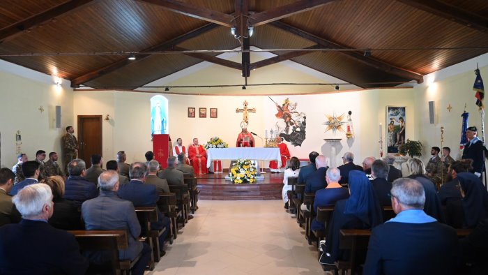Il Comandante, Col. Nicola Iovino, ha rivolto al Reparto un profondo messaggio di augurio, evidenziando il carisma dell’Arma di Cavalleria e le caratteristiche che la contraddistinguono. Successivamente, alla Santa Messa, oltre ai militari e ad alcuni familiari, hanno preso anche parte numerosi ospiti: il Comandante della Brigata Bersaglieri Garibaldi, Gen. B. Mario Ciorra, il Vicario del Prefetto Dott.ssa Franca Fico, il Vice Sindaco Paki Memoli, i Comandanti provinciali delle Forze Armate e del Comparto Sicurezza, Ufficiali del Comprensorio Militare di Persano, le autorità civili del capoluogo, le rappresentanze delle Associazioni Combattentistiche e d’Arma, dell’Ordine Equestre del Santo Sepolcro di Gerusalemme, diversi cappellani militari e sacerdoti della città. Il vescovo Mons. Al-Kabalan nell’omelia ha richiamato la figura di San Giorgio quale modello cui ispirarsi nel quotidiano operare con generosità e dedizione, evidenziando in particolare l’impegno profuso nelle operazioni di peacekeeping in tutto il mondo e nel medio oriente in particolare. Inoltre il presule ha ringraziato il Comandante Iovino per l’azione di supporto umanitario, che da anni alimenta i canali della cooperazione civile-militare in Libano, e che nei prossimi giorni si concretizzerà in una nuova donazione alla Caritas Lebanon: una giornata di festa che ha voluto tradursi in attenzione solidale alla popolazione del Libano del Sud, oggi ancor più afflitta da contrasti e animosità.