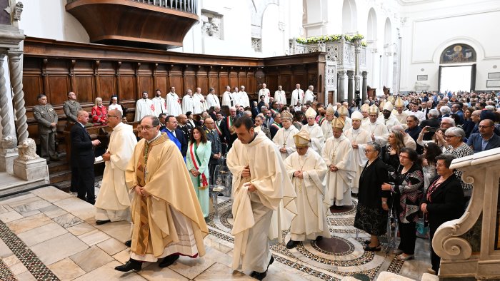 E' stato celebrato questa mattina, 1 giugno 2024, alle 10.30, presso la Cattedrale Primaziale di Salerno, il Rito di Ordinazione Episcopale del Rev.do Mons. Alfonso Raimo, nominato, lo scorso 30 aprile, da Papa Francesco, Vescovo Ausiliare dell’Arcidiocesi di Salerno-Campagna-Acerno, con Sede titolare di Termini Imerese. A presiedere la Celebrazione Eucaristica, l’Arcivescovo di Salerno-Campagna-Acerno, Sua Eccellenza Monsignor Andrea Bellandi, con accanto i Vescovi Co-Consacranti, Sua Eccellenza Monsignor Pasquale Cascio, Arcivescovo di Sant’Angelo dei Lombardi e Vice Presidente CEC e Sua Eccellenza Monsignor Antonio De Luca, Vescovo di Teggiano-Policastro e Segretario CEC, alla presenza di circa 20 tra Arcivescovi e Vescovi provenienti non solo dalla Campania, tra cui Sua Eccellenza Monsignor Peter Chifukwa, Vescovo della Diocesi di Dedza -Malawi, nonchè delle Autorità Civili e Militari, sindaci e rappresentanti di altre Religioni.