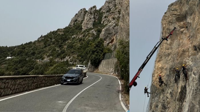 La transitabilità della tratta di SS163 era stata interrotta lo scorso lunedì 17 giugno quando, in seguito al distacco di un blocco lapideo del costone, era stata altresì riscontrata la presenza di ulteriore materiale instabile. Le attività (in capo agli Enti Competenti) su tale costone proseguiranno, mediante l’istituzione del senso unico alternato, con impianto semaforico.