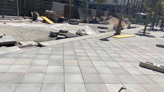 Continuano i lavori di pavimentazione su Corso Vittorio Emanuele a Salerno. Prosegue la posa della pietra lavica etnea, che sta interessando un primo tratto di percorso e quello della posa della zanella concava, che dovrà raccogliere l'acqua piovana.