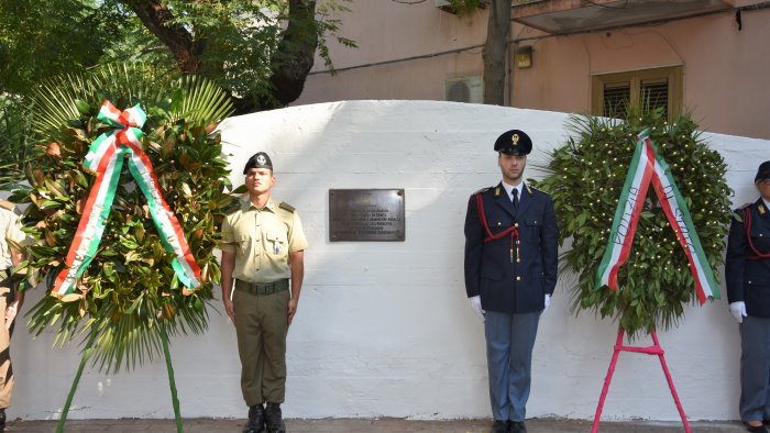Questa mattina, in via Parisi a Salerno, ora Piazza Vittime del terrorismo nel quartiere Torrione, alla presenza del prefetto Francesco Esposito, del questore Giancarlo Conticchio, con la deposizione di tre corone di alloro al monumento eretto, offerte dalla Polizia di Stato, dall’Esercito Italiano e dal Comune di Salerno, si è tenuta una breve cerimonia per ricordare l’attentato terroristico che provocò, in data 26 agosto 1982, la morte dell’agente della Polizia di Stato, Antonio Bandiera, dell’agente Scelto della Polizia di Stato, Mario De Marco e del Caporale dell’Esercito Italiano, Antonio Palumbo.