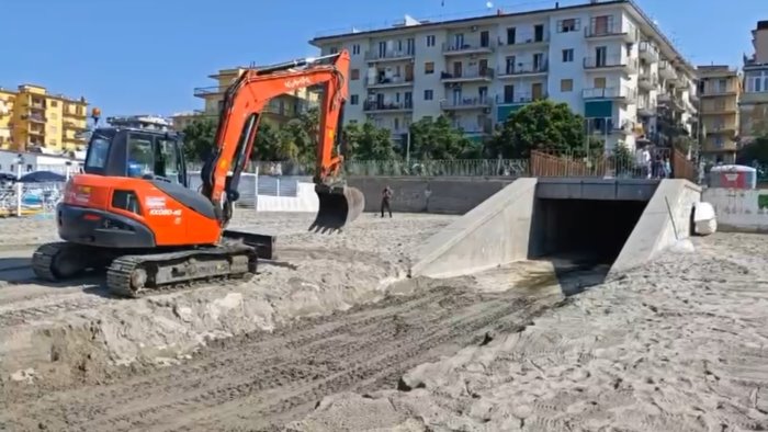 E' in corso un intervento di bonifica sulla spiaggia di Mercatello, nella zona orientale di Salerno, dove ieri pomeriggio si è verificato uno sversamento di acqua nera e maleodorante. Gli operai di Salerno Pulita, anche con l'ausilio di mezzi meccanici, stanno ripulendo l'arenile per consentire ai bagnanti di poter trascorrere in riva al mare l'ultimo sabato di agosto.
