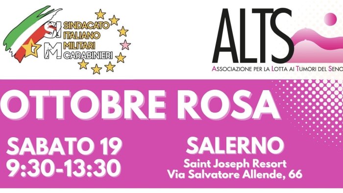 Un appuntamento imperdibile con la prevenzione! Il SIM Carabinieri Campania, sempre vicino alle esigenze della comunità, nel mese dedicato alla prevenzione si unisce all’Associazione ALTS (Associazione Lotta Tumore al Seno) nella lotta contro il tumore al seno, promuovendo una giornata dedicata alla salute e alla prevenzione in tutte le province della Campania.