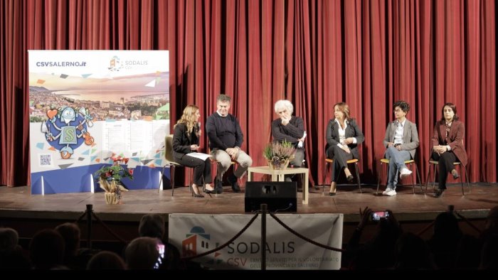 Prima del momento di intrattenimento con il trio comico salernitano VillaPerBene che ha regalato momenti spensierati e risate ad una platea partecipe ed entusiasta, c’è stato ampio spazio alle riflessioni con il confronto e il dibattito insieme al presidente di Sodalis Csv Agostino Braca che non solo ha ripercorso gli anni di attività sul territorio ma ha anche presentato parte della programmazione 2025-2027, frutto dell’assemblea dei soci tenutasi il 15 novembre. Tra obiettivi e tasselli mancanti sul percorso dell’associazionismo e del volontariato con le proposte e le idee degli interlocutori presenti, si è discusso di normative ma anche di momenti di crisi vissuti a livello nazionale che spesso hanno minano e continuano a farlo l’operato di chi mette a disposizione il proprio tempo per aiutare e supportare il prossimo. Al dibattito, sulle sfide del terzo settore che partono proprio da Salerno, oltre al presidente Braca hanno partecipato la consigliera del Forum nazionale del Terzo settore Francesca Coleti, il presidente dell’OTC Campania Molise e della Fondazione Carisal Domenico Credendino, l’assessore alle politiche sociali e giovanili del Comune di Salerno Paola De Roberto, il presidente CSV Net Chiara Tommasini.