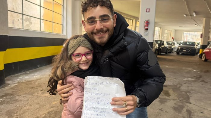“Caro Babbo Natale, non voglio regali materiali ma desidero incontrare Rocco Hunt” : ad esprimere questo desiderio è stata Greta, una bimba di sei anni che ha consegnato la sua letterina a MeraviglioSA, l’iniziativa ospitata a Piazza Sant’Agostino. I vertici di Cna Salerno che con Camera di Commercio, Comune e Bottega San Lazzaro organizzano l’iniziativa, che tra spettacoli gratuiti per i bimbi e mercatini artigianali va avanti fino al 6 gennaio, non potevano restare indifferenti alla richiesta e si sono attivati per mettersi in contatto con il cantante salernitano per riuscire a strappare un incontro e realizzare il desiderio di Greta. Ed oggi per Greta è stato nu juorno buono! Rocco sempre sensibile ed attento ad iniziative come queste ha realizzato il sogno affidato alla letterina per Babbo Natale della piccola Greta che ha la stessa età del figlio del rapper salernitano. “Devi vincere Sanremo” è stato il nuovo desiderio espresso da Greta che, accompagnata dalla mamma Daiana e dalla sorella maggiore Giorgia, ha potuto abbracciare, tra gioia ed emozioni, il suo idolo, consegnandogli la letterina ed anche un disegno con un cuore che gli ha regalato. In cambio ha ricevuto un autografo e probabilmente il regalo più bello della sua vita per Natale.