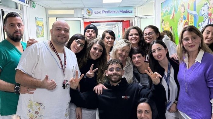 Questa mattina, presso la Pediatria dell'AOU San Giovanni di Dio e Ruggi d'Aragona di Salerno, diretta dalla dottoressa Carolina Mauro, una attesissima visita ha rallegrato i piccoli pazienti ricoverati nel reparto. Il noto cantante e artista Salernitano, Rocco Hunt, ha festeggiato l'Epifania insieme ai bambini del Ruggi e con estrema gentilezza e disponibilità ha anche partecipato ad un bellissimo coro intonato da tutti i presenti.