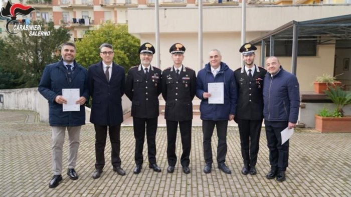 Nella circostanza della cerimonia, il Comandante Provinciale, Colonello Filippo Melchiorre ha consegnato gli attestati di Encomio concessi dal signor Comandante della Legione Carabinieri “Campania”, Gen. D. Canio Giuseppe La Gala, al Capitano Francesco D’Alù, ai Luogotenente Carica Speciale Giuseppe Capriglione e Nicola Giordano, al Luogotenente Carmine Fimiani e al Maresciallo Ordinario Antonio Siano, Comandante il primo e Addetti gli altri, della Sezione Operativa del Reparto Territoriale di Nocera Inferiore (SA). Ai 5 militari è stata riconosciuta la ricompensa per la professionalità e le capacità investigative dimostrate nella conduzione di un’attività investigativa che ha